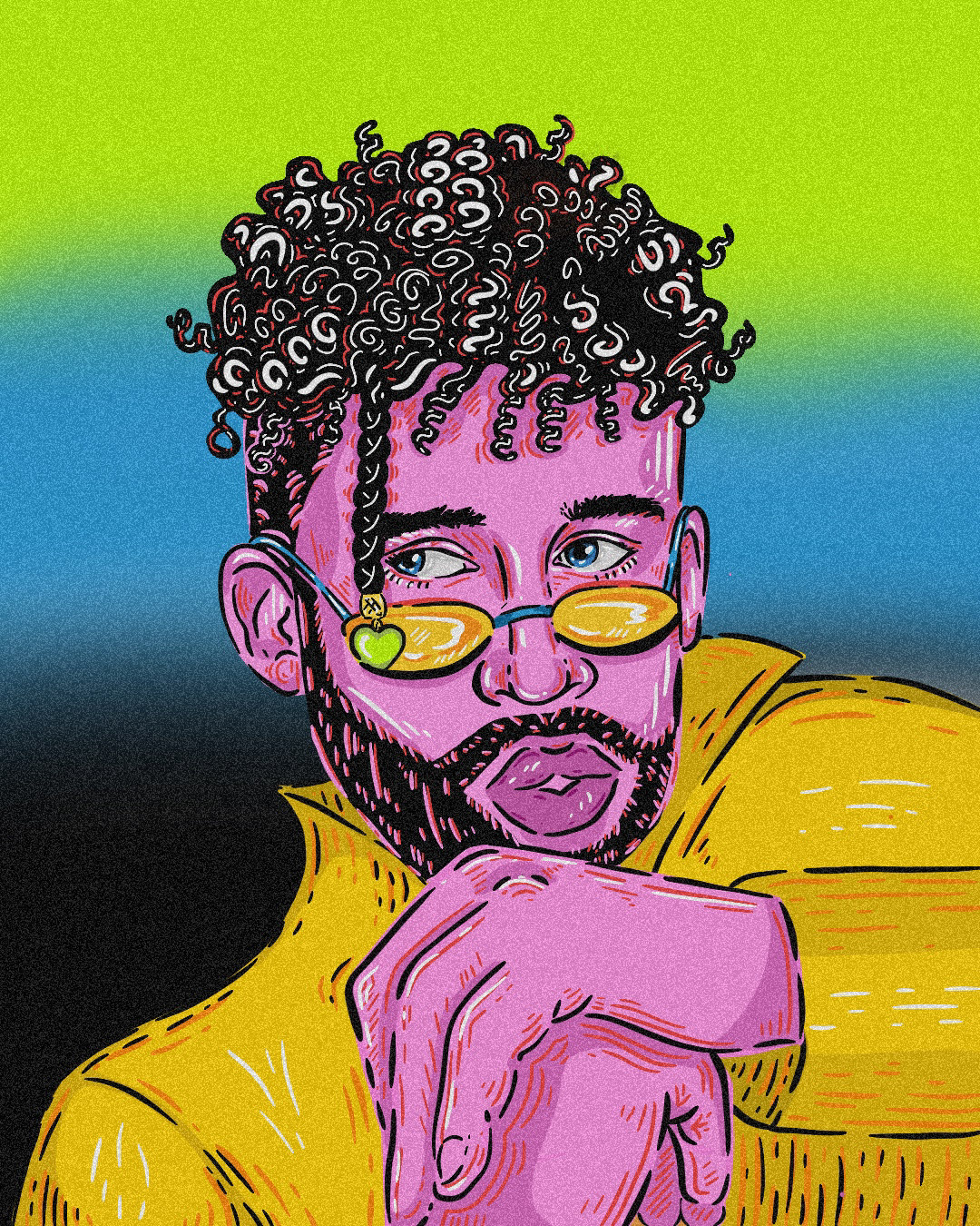 Using procreate to create this illustration of Bad Bunny.